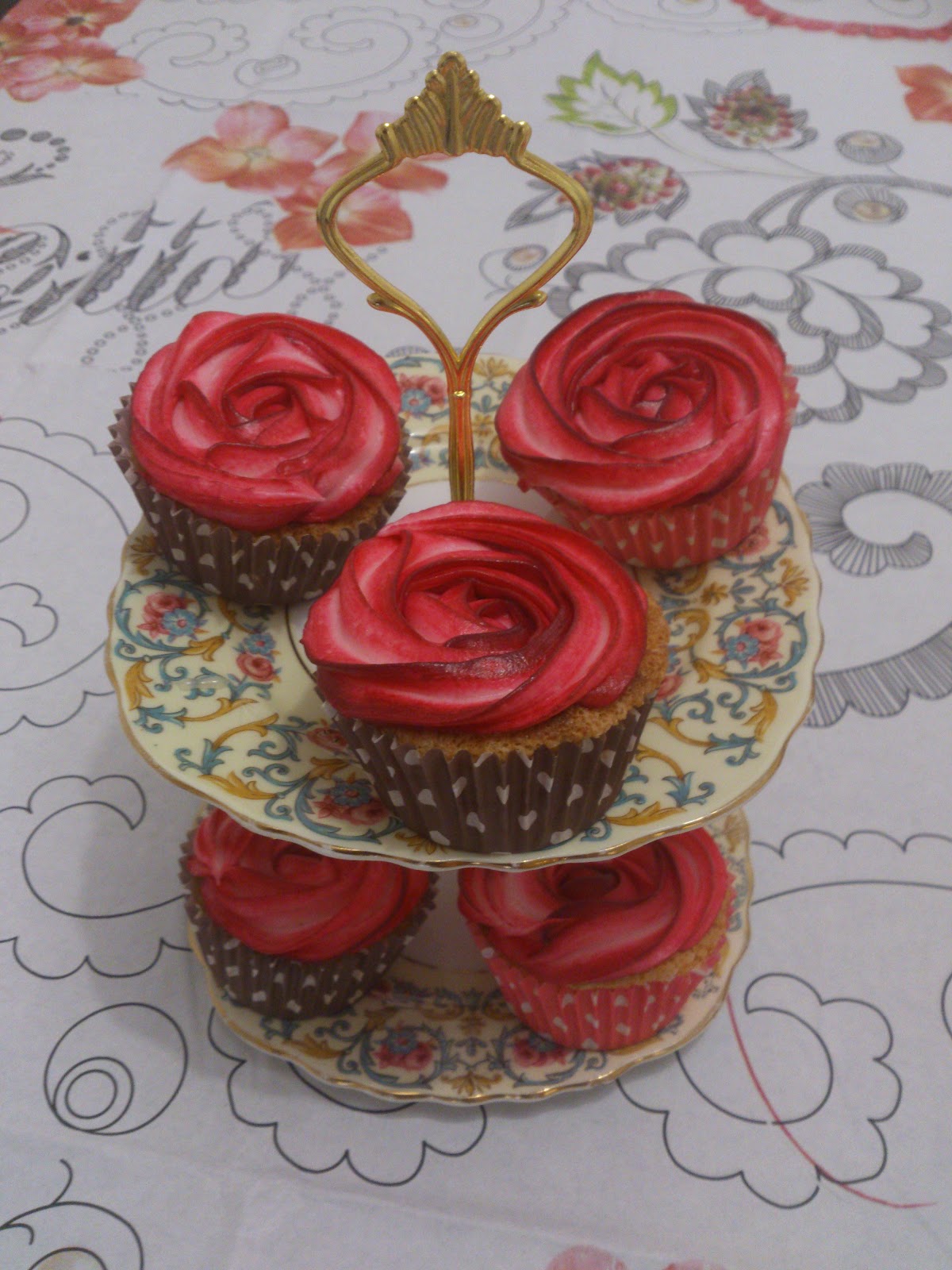 Your grandma/mum/aunt/sister will love them and may even make a sort of cooing noise at how pretty these little cakes are, taking pictures to show Auntie Jean or Betty down at the bowls club (not your sister, that would be odd). Your grandad/dad/brother/uncle will express how impressed they are in a more discreet manly fashion and may even make a 'hmph' noise on site of these. However, they will probably ensure that they also pick up a big manly wedge of pie or sandwich to accompany one of these on their plate and only secretly and quietly quaff one. Probably in one bite. Like a man. Saying something like 'Did it look like a rose on top? I hadn't noticed. I just ate it.'
